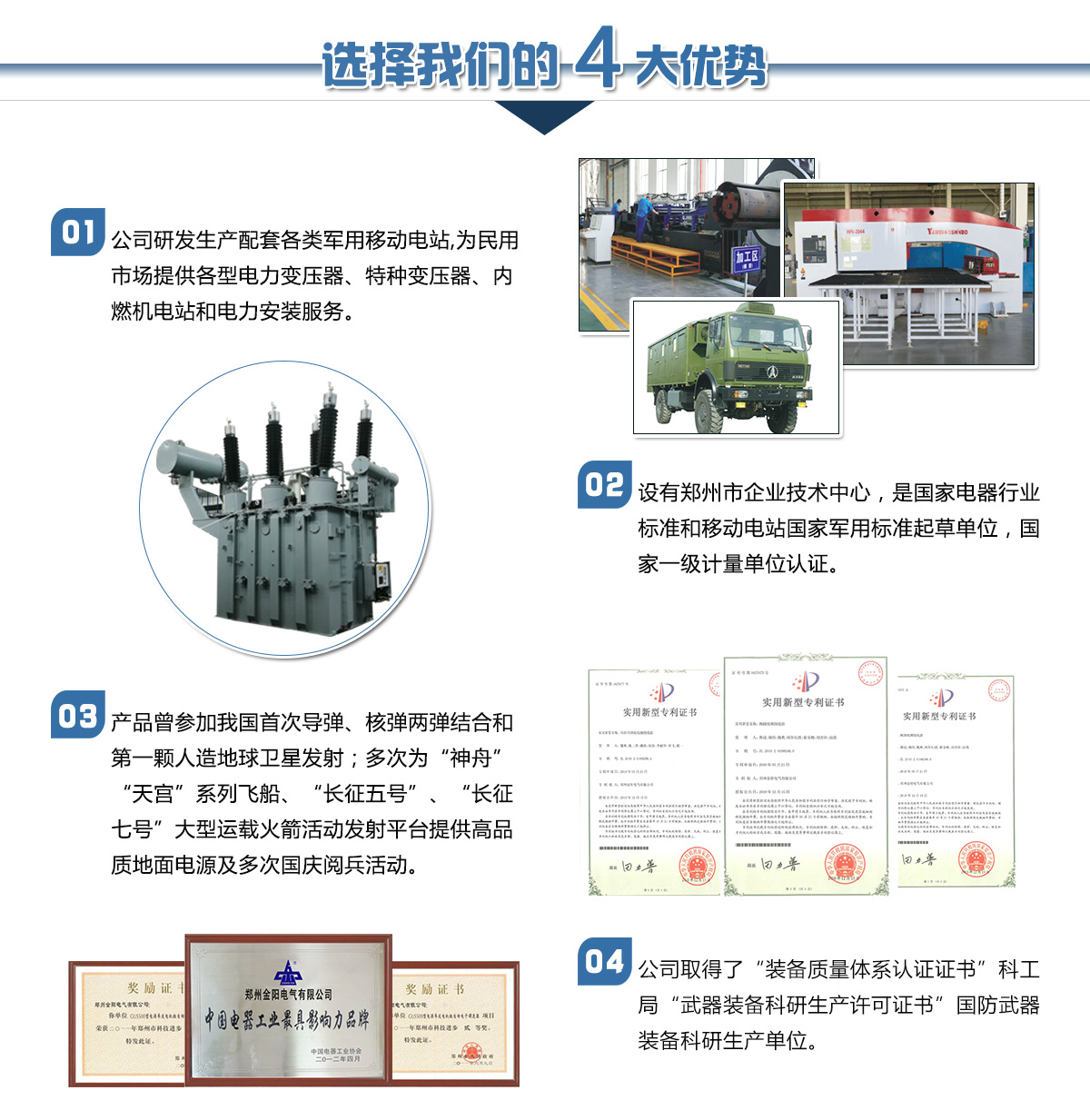 鄭州金陽電氣有限公司是由鄭州市國資委控股的國有獨資企業(yè),是原機械工業(yè)部在上世紀五十年代投資建立的移動電站和電力變壓器生產(chǎn)企業(yè)。公司下設電站公司和變壓器公司及其它配套公司,長期以來在國內(nèi)移動電站和電力變壓器行業(yè)占有重要位置。是河南省具備設計生產(chǎn)110kV電壓等級以上電力變壓器資質的企業(yè),是國家經(jīng)貿(mào)委首批推薦城鄉(xiāng)電網(wǎng)建設與改造所需變壓器的生產(chǎn)企業(yè)。河南省變壓器檢測中心設在我公司。